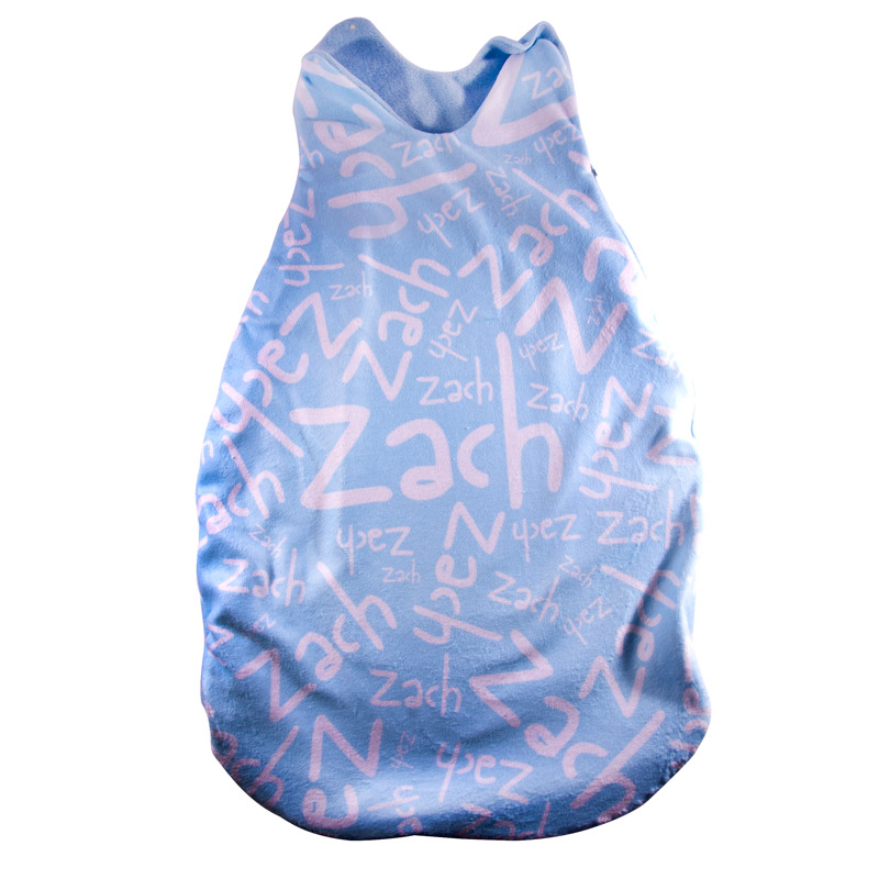 We make the beautiful personalised baby grow bags, baby bedding, and snugly sleeping bags for babies especially. They are also useful as travel sleeping bags in a car seat. Snugly baby grow-bag with names printed on soft cuddle fleece makes for sleeping bags for babies. Sleeping bags for babies are ideal as a gift set with baby blanket, baby changing mat, and if you want a full nappy and changing bag set order with our small holdall. It's a classic selection. We custom-make all our baby gifts to order in our London facility, including these wonderful personalised baby grow bags.
