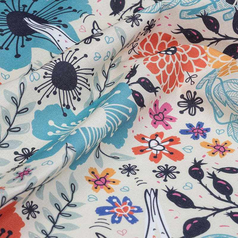 Calico printing is done here in our studio; we work to quick turnaround times and ensure that amazing high-quality is maintained. We print on calico fabric digitally, however there is more than one method in which we do this. The main method that we use for natural fabrics is pigment printing. This will print your personalized design directly onto the the calico fabric. This prints in a very localized method, applying the colored dyes to a particular part of the calico fabric. Calico printing uses this method to slowly build up the design onto your printed calico fabric. Printing on calico produced detailed results, with warm undertones and a slightly muted print.