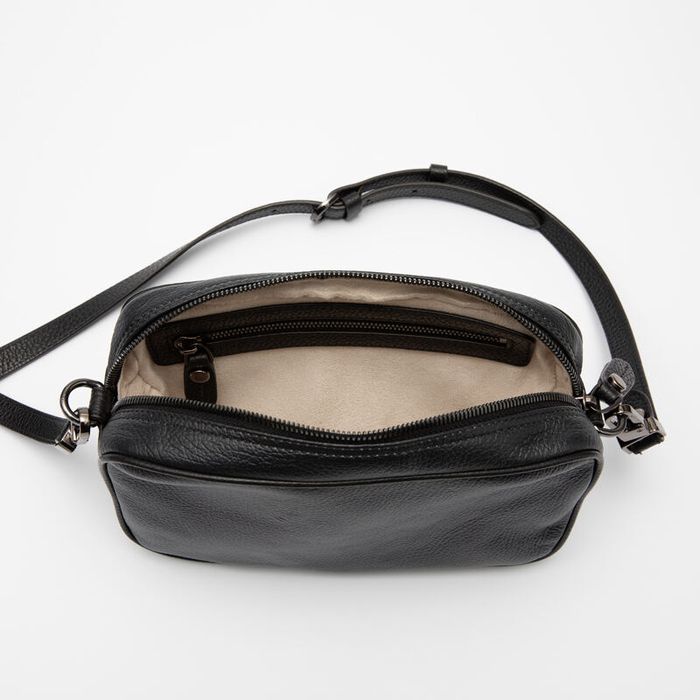 We then add the zips which are made from either gunmetal, gold, or silver. Lastly, your choice of strap will be added to the bag. If you choose a chain strap, this will be non-removable. Alternatively, if you choose a clip handle, you will be able to use your personalized camera bag as both a clutch or a body bag. The leather strap and zip pulls are all hand-painted on the edges for a clean and smooth finish.