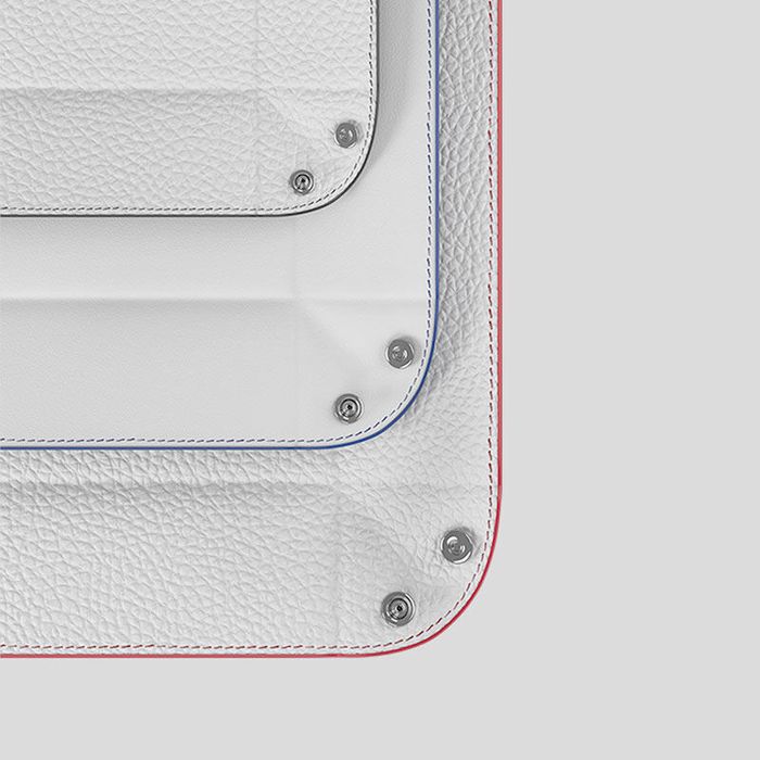 Once you've designed your custom leather valet tray and we've quality checked the image, your design heads to our printers. Our skilled print technicians use an industry-leading technique that uses eco-friendly inks to print on the Nappa leather. The leather retains its authentic texture with your design printed on top of it, and the print is durably fused into the natural fibers so won't peel off. We sew the leather pieces together with your choice of thread color and hand paint the edges to make sure everything looks seamless. The buttons are added to the corners of your custom trinket dish so that the sides can fold up. All of this is done by hand on-site in our bespoke facility.