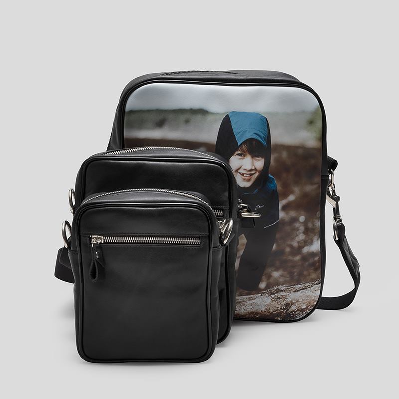 Bring an element of smooth style to your wardrobe or buy him a personalized photo gift to remember when you design your own messenger bag.