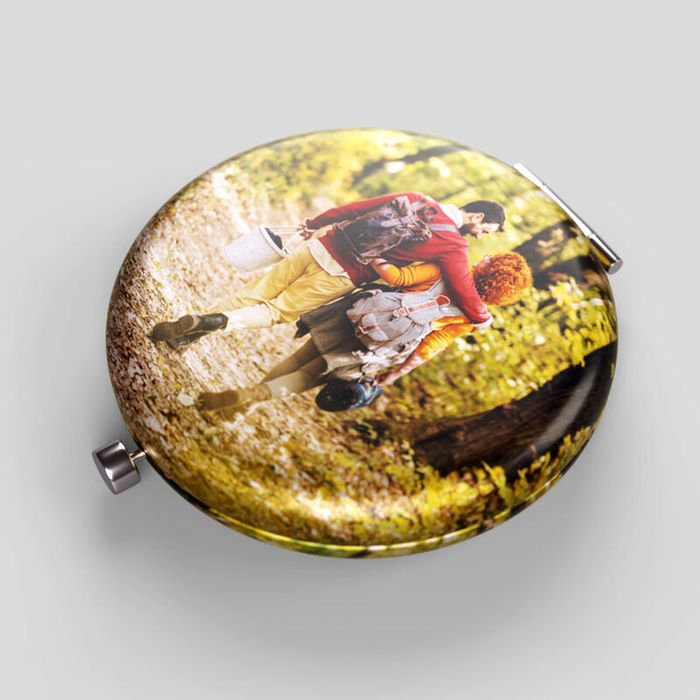 There's nothing quite like this personalized pocket mirror. Printed all over the base and lid with your designs, there's no mistaking who's mirror this is when you personalize one for yourself. Custom pocket mirrors also make excellent gifts for beauty gurus who love expressing themselves through their makeup. Busy professionals can benefit from this photo pocket mirror as it's the perfect accessory to make sure you look put together before a big meeting or presentation.