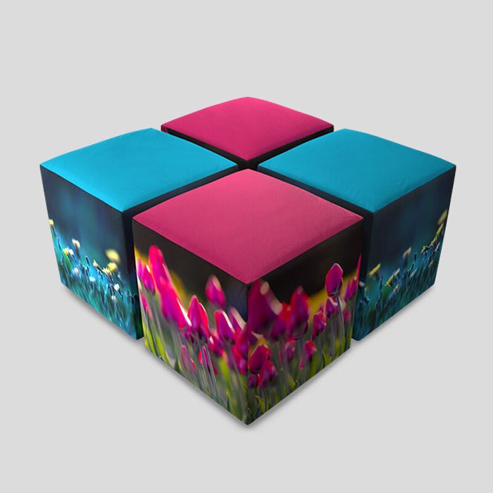 Keep in mind while designing your printed pouf that the pattern will not match at the seams. This is the perfect opportunity to choose different patterns and photos and break them up with alternating colors. We love the idea of an abstract piece that will add plenty of style to any room you place it in.