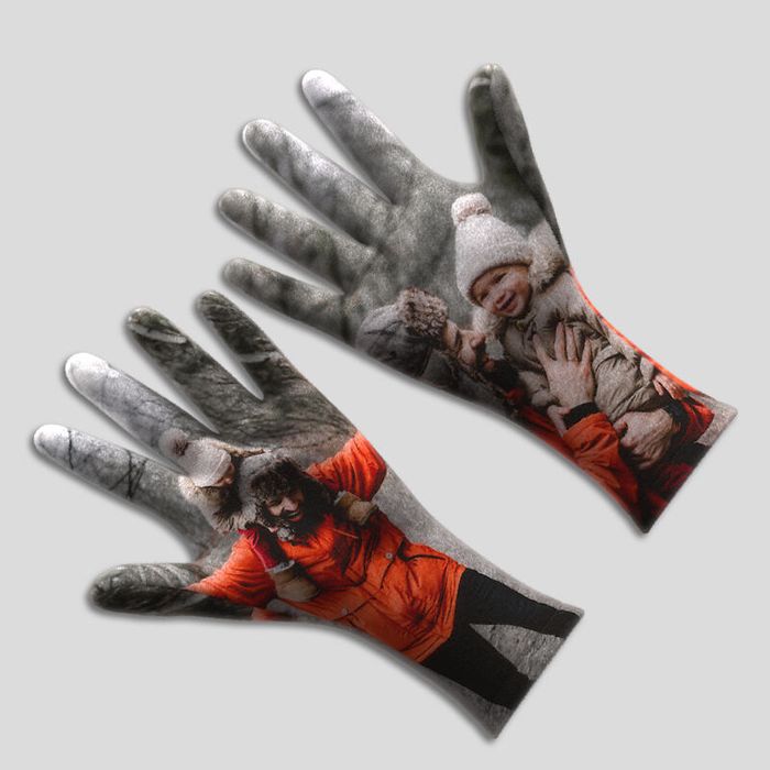 Get creative with personalized winter gloves for a unique gift to last for many winters to come. With four customizable sides, you can design the front and back of each glove. This means you can make them match, or even have a different print on each side. We advise choosing a stitch color that best resembles the pattern color to avoid visible stitching at the seams. Upload photos and images or get creative with text for a truly unique and toasty gift.