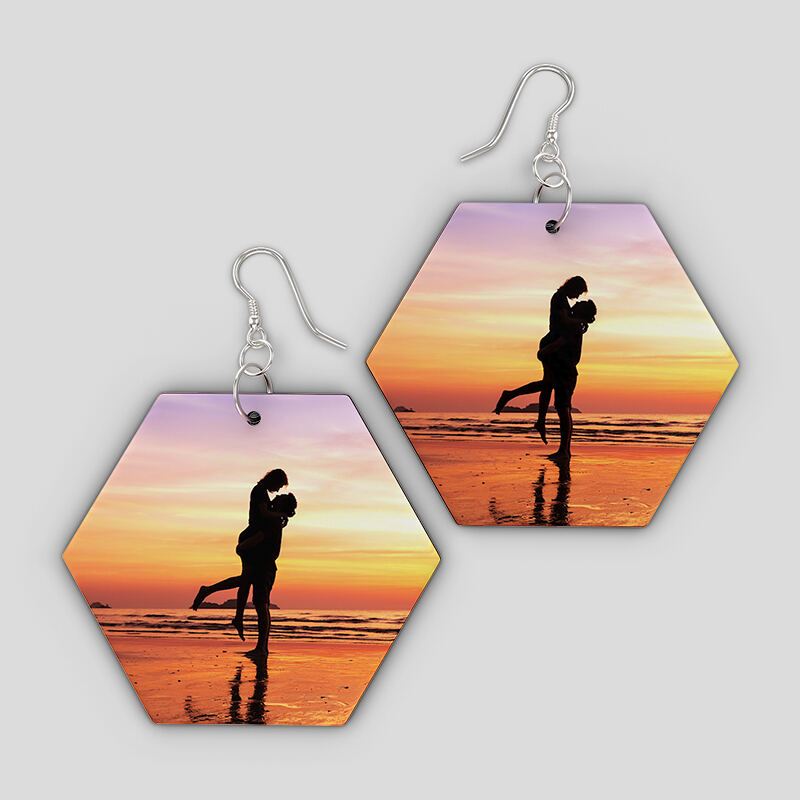 Whatever design you have in mind for your personalized wooden earrings, your options are endless. To make sure we bring your design to life, it's important to consider the size, shape, and colors you want to use for your wooden earrings. We have 6 shapes available in different sizes to think about when you design your own wooden earrings. For shapes like the triangle and cut-out circle, decide which part of the image you wouldn't mind being cut so we can capture the important elements of your design. Repeat patterns are a good option for the cut-out earrings as you'll still get to see your pattern in the visible areas. On all other shapes, we recommend photos are centered to ensure the important details in your design can be seen.