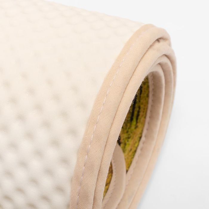 To avoid disappointment, we suggest avoiding the use of plain block colors. This is because the non-slip rubber base will slightly show through, so bold patterns work best. You have a choice of 6 colors for the binding trim - stone, pink, blue, green, maroon or black - so your mat is perfectly color coordinated.