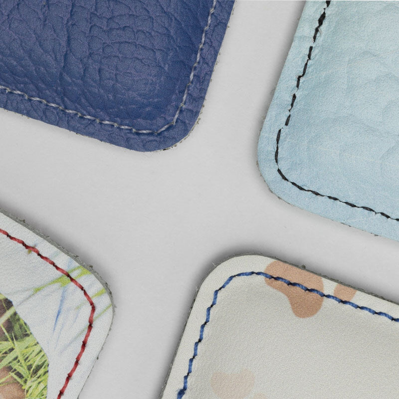 When we receive your order for your doubled sided photo keyring, we print your photos onto two pieces of soft leather. This is then cut to size and hand-stitched together by our wonderful seamstresses. A spongy padded insert is added between the layers for a more premium look. The double sided keyrings are stitched using a 40 gauge thread that's available in five colors: Cream, charcoal, blue, brown, or red. The same color choice will be used for our edge painting, which is a finishing detail that keeps the leather edges waterproofed and gives a pristine finish.