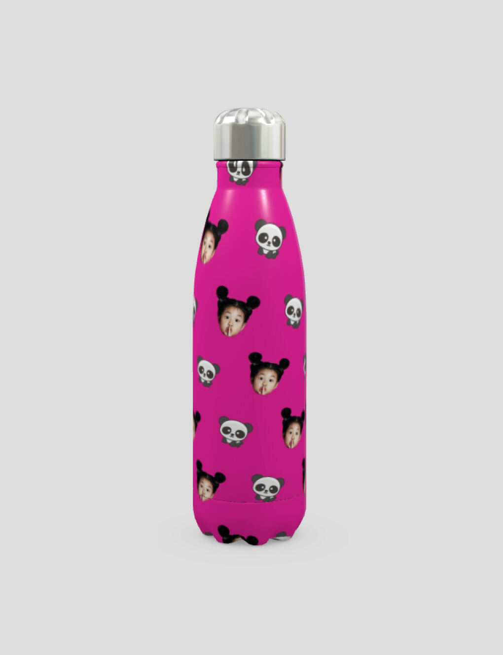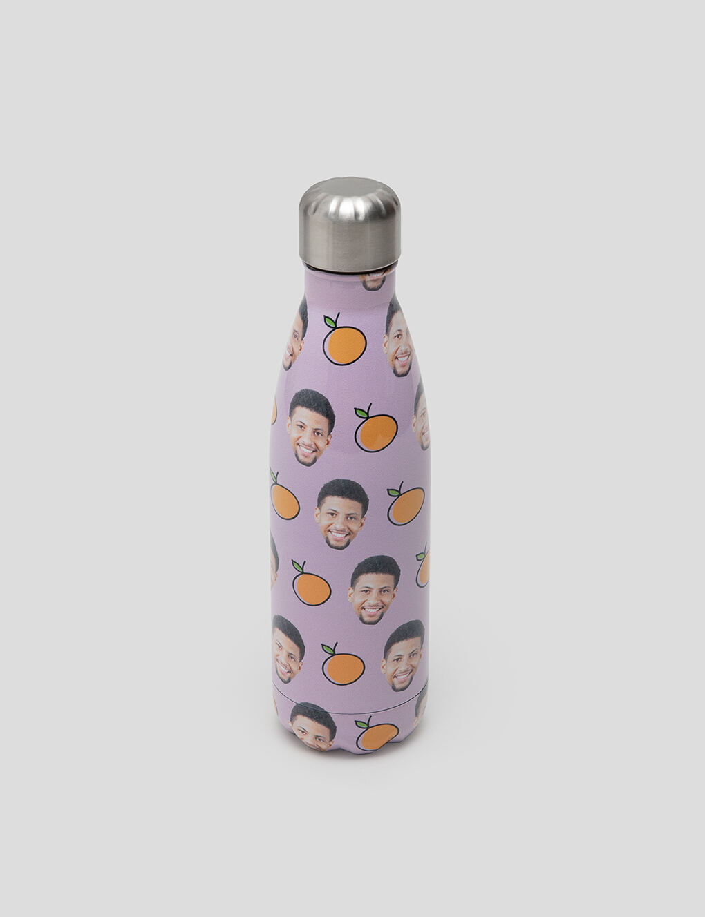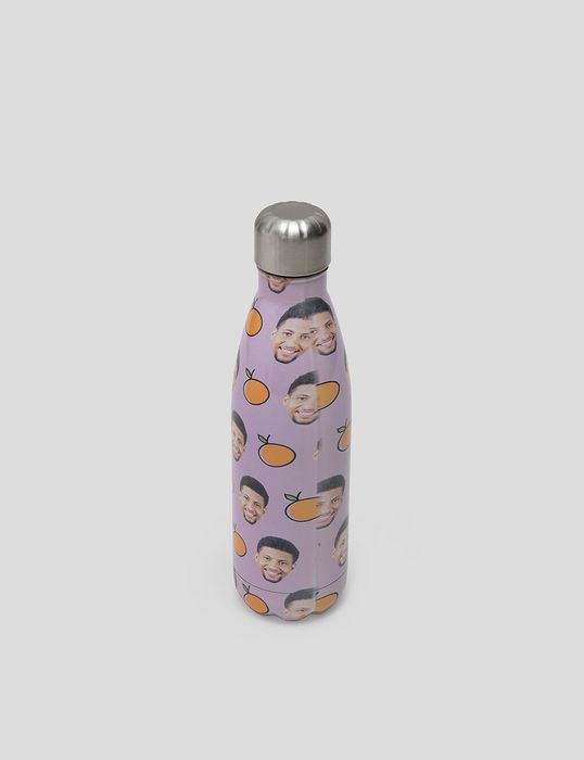 You can choose whether you would like a white or a silver metal base for your face bottle. Because we don't use white ink this can affect the way that the finished design looks. Basically, the white areas are left unprinted, and so show up as silver on the silver colored bottle. This gives your thermal bottle with face a look of authenticity and charm, however light colors will show up better on the white version.