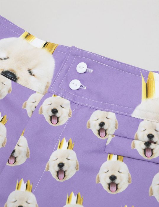 Your face beach shorts are digitally printed using a method which bonds the inks to the fibers of the fabric. This fabric is then hand-cut, stitched and finished. All of this is done in our studio making your beach shorts with faces on a handmade sight to behold.