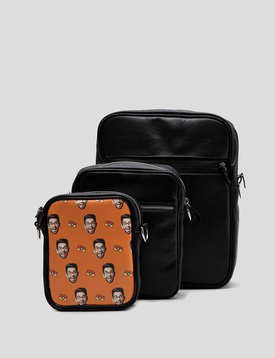 There are three different size options for your face messenger bag. If you opt for the small bag, it's 7" x 5.5" x 2.3", and this features a zipped rear pocket. The medium-sized bag is 8.6" x 7" x 2.3" and also features a zipped pocket on the back. The large shoulder bag with faces is not only a whopping 11.8" x 10.2" x 3.9" but as well as the rear zipped pocket your bag features internal zipped pockets as well.