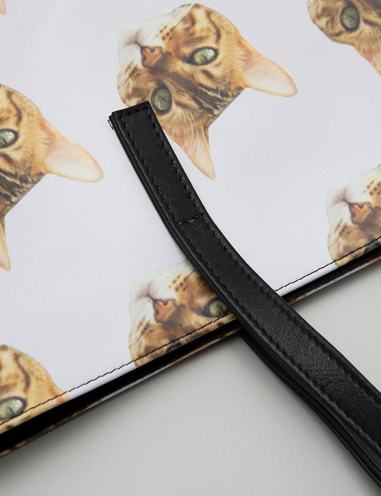 Your face tote bag is available in either small or large. The small is 10.2" tall and 6.7" deep. Due to the shape of the face tote bag, the width varies from 18.1" at the top of the bag to 14.3" at the bottom. If you would prefer a large cat face tote bag then it is still the same height and depth, however, the bag varies much less in size between the top and the base, with the 18.1" top tapering down to only 17.1" at the bottom. Both sizes feature 16.5" strong leather handles, which sit at 8.2" from the top to the edge of the bag.