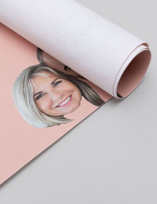 It's pretty simple - we print your design using a printer that spans the length of our warehouse. Nah, just kidding. Can you imagine how expensive that would be?? Our technicians use a large (but not enormous) printer to fuse the eco-friendly inks into the fibers of the face wallpaper, section by section. They make sure everything fits perfectly together so that there are no weird overlaps or missing eyeballs on the final product.