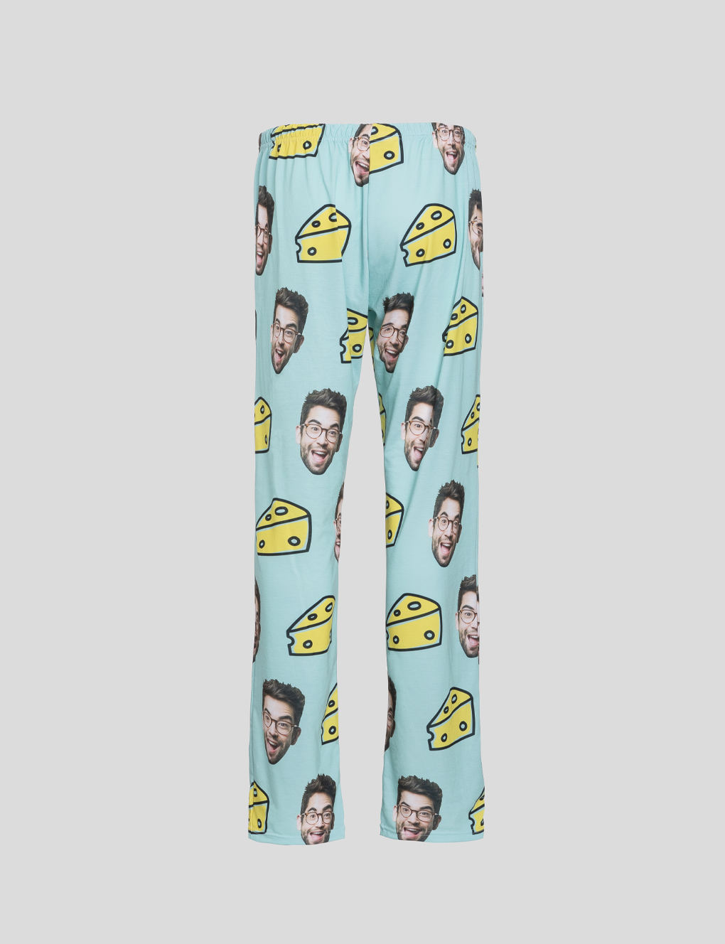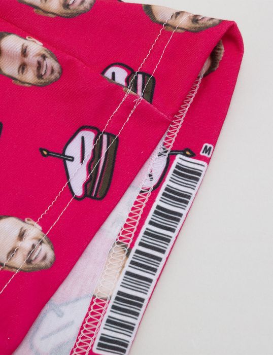 Our print technicians print your design, whether that's a human or pet face, onto the material of your choice. The eco-friendly inks are bonded into the fibers of the fabric for a vibrant and long-lasting print. This technique ensures that your design will resist fading. Then, this fabric is cut into the individual pieces that make the cat face pajamas, and everything is sewn together.
