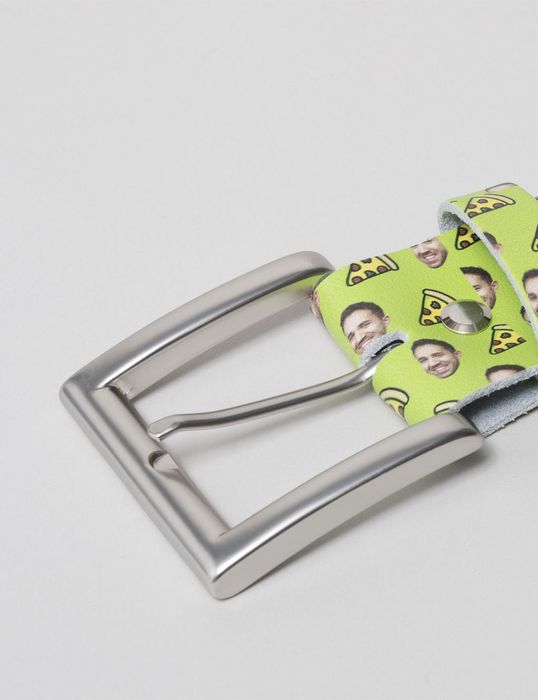 Made from 100% real leather, this belt with face on it is the perfect accessory to jazz up any attire. With your choice of gunmetal or silver metal buckle, this luxurious leather is 1.24in high, 0.15in thick available in six different sizes to ensure the best possible fit. The edges of the belt are painted in order to maximize the quality and to ensure it lasts. Choose from charcoal, cream, and brown to add a premium finish. Put your face on a belt and add a dash of color to any dressy style and you have the perfect excuse to attract eyes to a more seductive place, or wear with your casual kicks to pull it all together. Everything is printed using modern methods, which bond the inks to the leather for a truly high-quality finish.