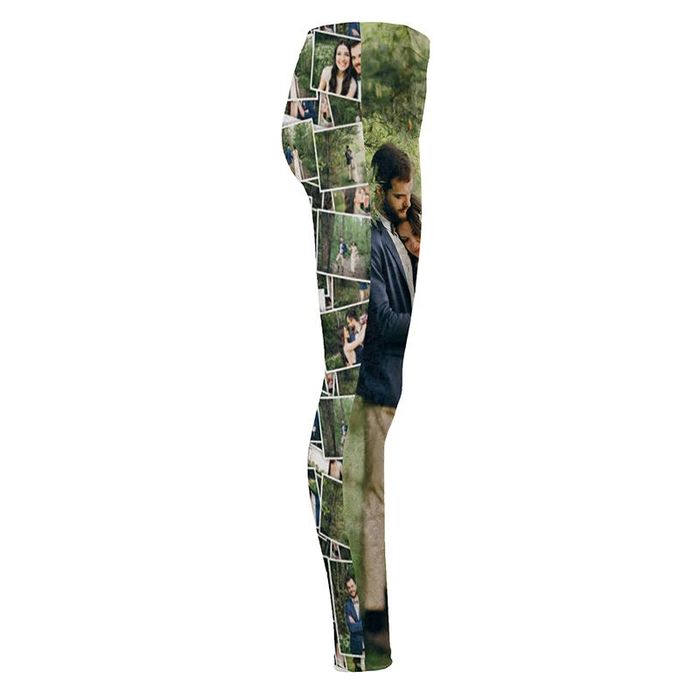 Your high waisted leggings have four areas that you can customize differently. You can personalize both the front and back, of each of the right and left legs with either the same photos and images or completely different ones. We love the idea of alternating these in an almost harlequin fashion so that your front right and back left photos are using similar colors, with a contrasting scheme for your front left and back right.