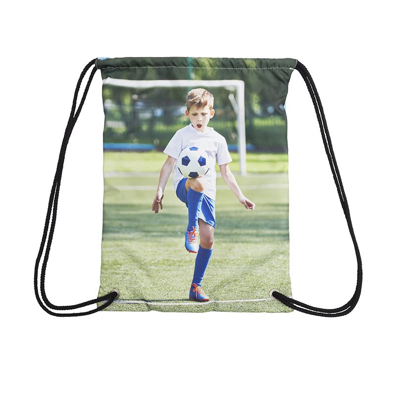 Please bear in mind the position of the metal eyelets in the bottom corners. If including your child's name, for example, you'll want to check that the letters don't sit where the fabric will be cut to compensate for the eyelets. Within the design interface, this is clearly marked out. Make the most of our double-sided printing and use one side for a photo and the other for more practical information, such as the child's name and the name of the kindergarten they attend, just in case anything gets lost. Making your personalized cinch bags as easily identifiable as possible will help to prevent loss and confusion.