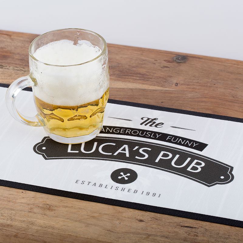 There are so many ways to have fun designing your personalized beer mat. If you have your own home bar and are looking at ways to jazz it up a bit, and give it more of that traditional pub vibe, then designing your own beer mat is a great way to go. There are no minimum runs with our mats, so you can order just one or 1,001! Choose from the three sizes and upload a design that will make you feel like you are the landlord of your own pub. Why not create a logo or name for your pub, and upload it along with a photo? This is a great way to personalize your space while creating a unique focal point for friends and family to admire.