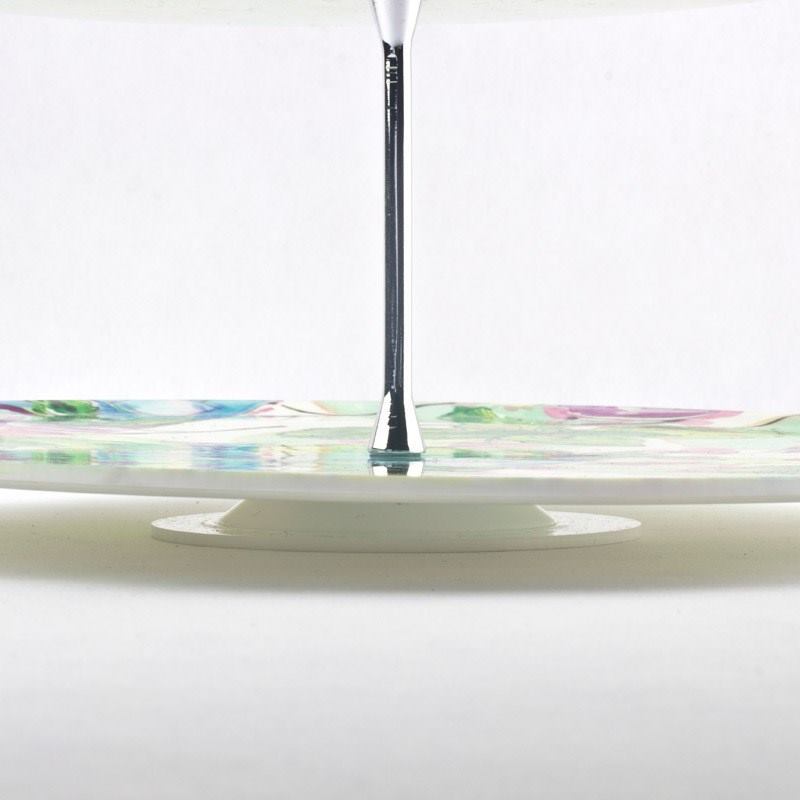For a quirky design idea, print text all over the cake plates to reveal a message. As each cupcake or biscuit gets devoured, a new word is revealed! Your custom cake stand would also suit a floral vintage design, ideal for setting the mood for a sophisticated high tea.