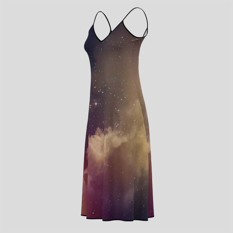 Dreamt up from super lightweight crepe fabric that gently falls in a flowy silhouette, the dress is a lovely fit for casual weekends. The slightly oversized look of the personalized casual sleeveless midi dress offers max flexibility when strolling around the city streets or chilling on Sunday mornings. Thanks to its stretchy spun yarn, the Fashion Crepe is full of character. The back of the fabric even reflects the front, making the custom made casual sleeveless midi dress ridiculously soft and ideal for everyday wear. You can create your look with thin straps and a V-neck or sleeveless with a round neck. Both fits, of course, boast the flowy effect and soft face of 100% polyester and a deep low-cut back. The midi is also expertly made with your choice of black or white thread for the stitching and binding.