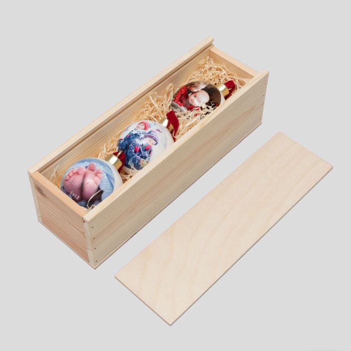 For that little added extra, our stunning bone china personalized Christmas baubles are available not only in standard postal packaging but with the options of beautiful gift boxes. The single Christmas tree ball ornament option is supplied in a sleek black card gift box with the choice of an optional seasonal sticker to adorn the top. When you opt for the three or a six-pack of personalized Christmas ball ornaments, you can choose to have it packaged in an FSC certified wooden gift box. This will keep your heirlooms safe from one year to the next, or make for a unique gift idea.