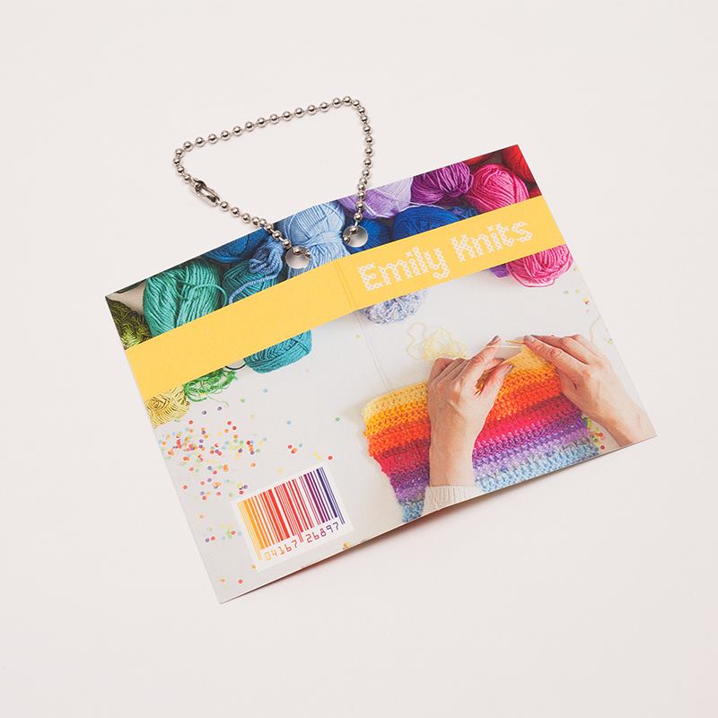 Your new custom hang tags for clothing are created using FSC approved recycled white card, which has a sleek matt finish. The card is 8.85oz thick so is sturdy and durable and the white backing color displays your print beautifully. Using a professional printing process, a permanent print is created using environmentally friendly inks – all onsite in our factory. You can select the same or different designs for the outside and inside of the folded cards and can add extra layers of text over your designs if necessary, for extra customer information. The personalized hang tags are available in 3 sizes, with different multi pack sizes available dependent on the dimensions. Choose from a pack of 9 small cards (2.16" x 3.35" each), a pack of 6 medium cards, or a pack of 6 large cards. For that extra professional touch, choose from four finish options. A nickel ball chain, an anti-rust stainless steel ball chain, slim red ribbon, or left simply with a punched hole for your own finish.