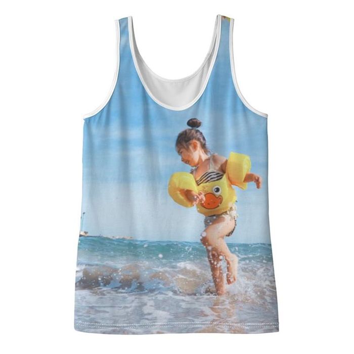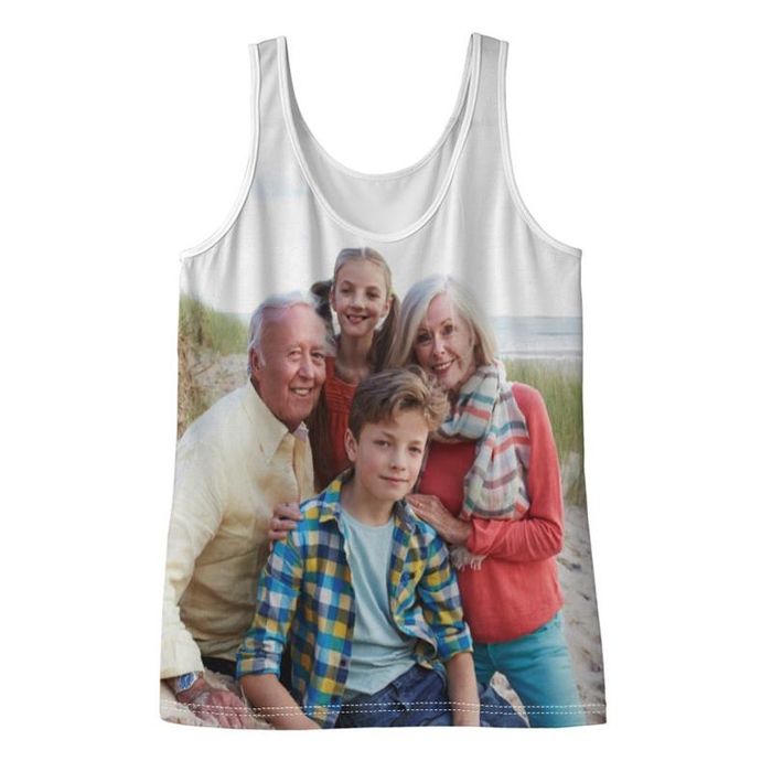 This custom printed tank is a snug-fitting, lightweight garment. Perfect for summer or year-round wear, they make a special personalized photo gift for anyone. With inch-long shoulder straps and a scoop neck, you can design your own tank tops using your photos, images, and text. The back scoop sits around three inches higher than the low-cut front, at its lowest point for traditionally shaped tank tops.