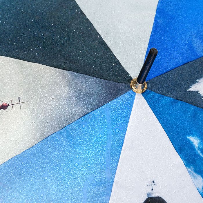 Play around with irony and design your own personalized umbrella featuring snaps from all your favorite holidays. Printed with images of blue skies, your kids in the pool and palm trees, it's a gentle way of poking fun at the weather.