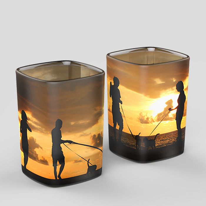 Once you've designed your custom vodka glasses, we print your design on specialized sublimation paper. We then wrap each piece of paper around each glass and use high temperatures to bond the inks to the glass. This process ensures that the print won't flake or peel off. Instead, the print is super durable without losing any of its vibrancy. The print is inconspicuously joined up on one of the corners of the glass. If you've opted for a gift tin, we use the same printing process on the lid. The finished result is a durable, photo-printed custom vodka glass set you’ll enjoy using for years to come.