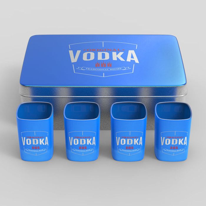 You can also opt to create a printed gift tin for your shot glasses. You can design the lid to match the shot glasses inside. The tin comes with a foam insert to keep your glasses in pristine condition. It's perfect to present as a gift or to store your custom vodka glasses in. The foam can also be removed so that you have a roomy tin to store other bits inside, such as drink accessories like straws, drink charms, or stirrers.