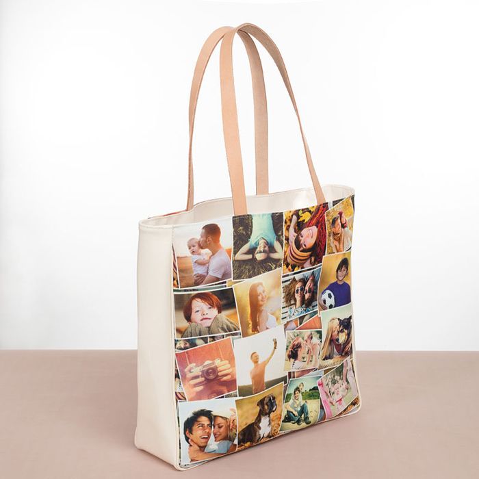 Perfectly square to maximize your shopping potential, we print your photos onto supple canvas and then hand cut the thick vinyl fabric to order. Our sewing and textile professionals assemble the bag by hand, ensuring the quality and finish are of an excellent standard. The real leather handles are placed in-between the vinyl and canvas fabrics for maximum strength.