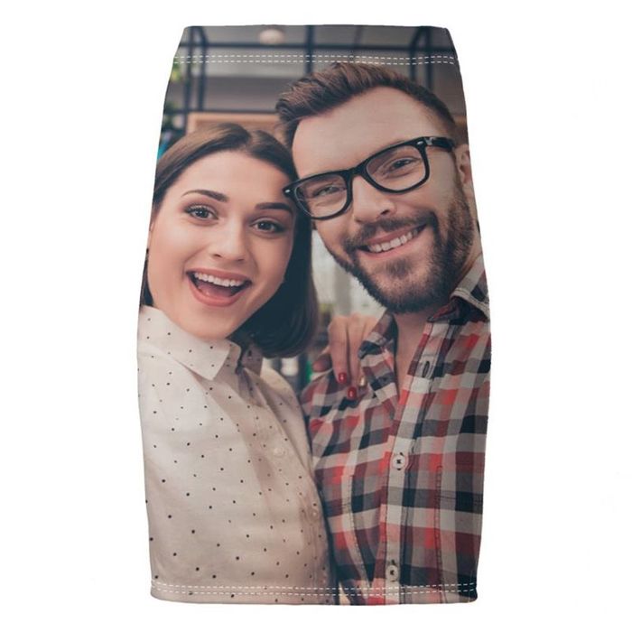That's it, now you have chosen all of your custom options, you are ready to personalize your design. Upload your favorite photos, create a graphic design or even add text to your printed midi pencil skirt, to make them as unique as you are.