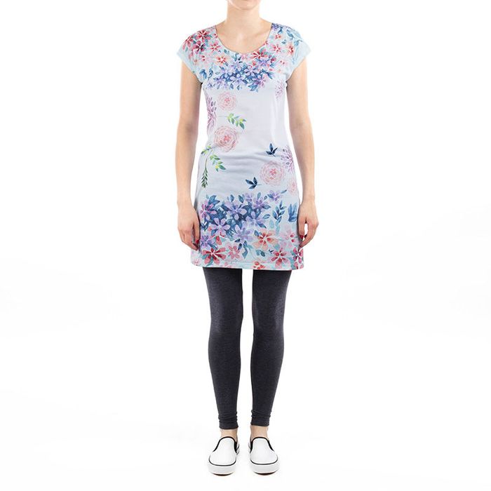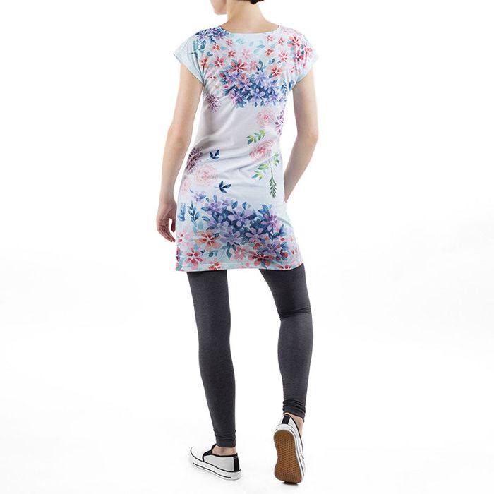The fabric is then cut to shape and hand-stitched by our expert seamstresses. They sew, hem, and finish the garment before it is fully quality checked. Once everything is complete we send your finished custom t shirt dress printing out to you.