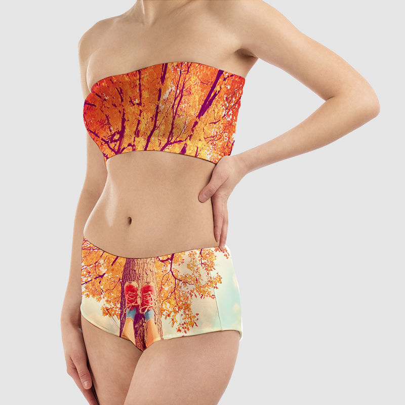 Bright tropical motifs, Aztec patterns and eye-catching typography all look fantastic on a strapless silhouette. Pair your custom made tube tops with high-waisted jeans, shorts or skirts for effortless day-to-night style.