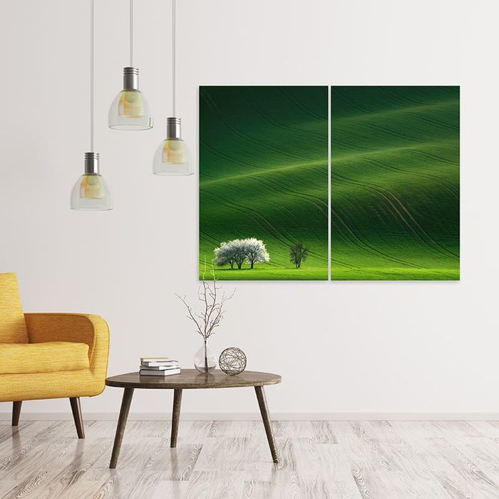 The eye-catching and thought-provoking aspect of the 2 panel canvas makes these installations different and interesting. Once you have designed your 2 piece wall art using our online design system, you can preview on the canvas itself, to see exactly what it will look like before you place your order. Once you are happy, submit your order and we will print your design onto our high-quality woven fabric. This material will be hand-stretched over a frame that has been handmade to your size specifications using FSC certified pine wood. We will secure your split canvas prints in place with wedges and stretchers, also made from FSC certified wood. The edges of your design will be mirror wrapped, meaning that your design will be mirrored to wrap around the frame, to avoid leaving white edges.