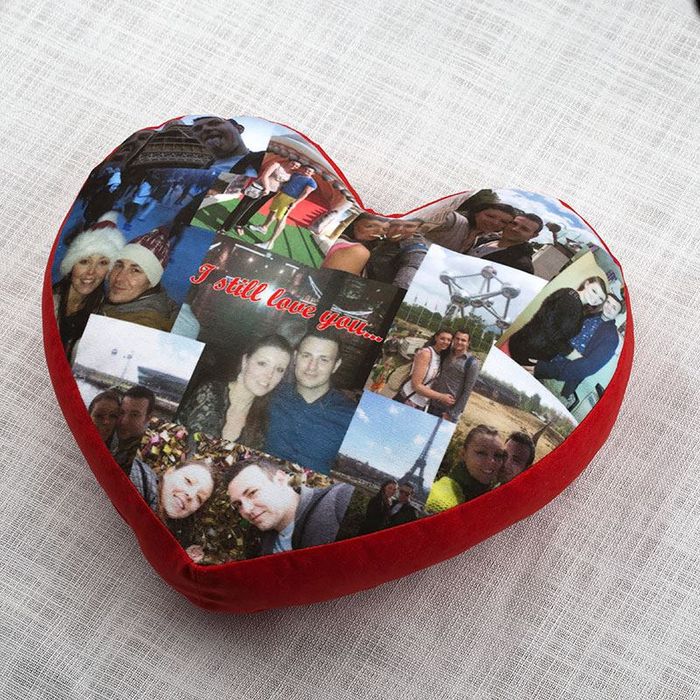 When creating your heart pillow with photo, bear in mind the heart shape where you could lose important features in the little cut-out. When positioned correctly, you can frame a face perfectly in a heart. Edit the image to ensure it's in the perfect place, or you can create a photo collage. This is perfect if you want to display a variety of memories to reminisce over. Simply upload a selection of pictures and choose from pre-set montage styles, or rearrange the photos to manually to create your own collage arrangement.