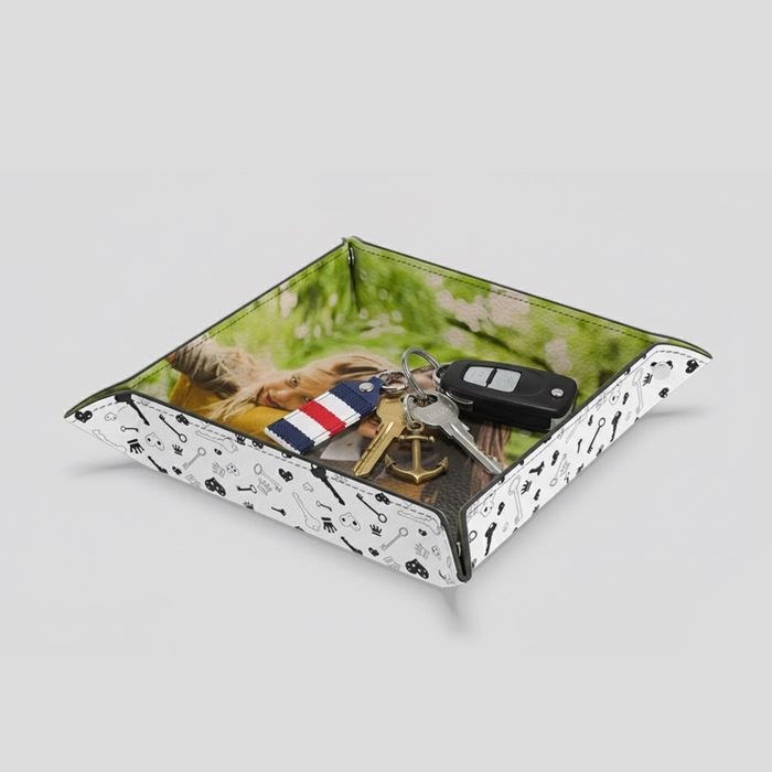 Transform your workspace into a personal sanctuary with the Desk Organizer Tray from Bags of Love. This stylish leather valet is perfect for tucking away everyday essentials like pens, paperclips, and business cards while showcasing your cherished memories. By personalizing it with your favourite photos or initials, you'll create a thoughtful, unique accessory that adds warmth and character to any desk, whether at home or in the office.