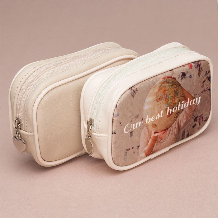 If you're giving a personalized pouch as a gift, you can add text over the photo to customize it with their name. Or if you have a special photo that you don't want to compromise, opt for a second image to be printed onto the reverse and display their name there instead. You could even print a sweet message on the back of the custom-printed pouch to surprise a friend on their birthday.
