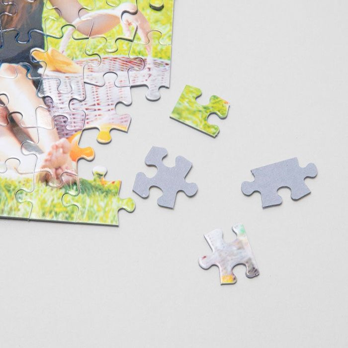 Want to create a jigsaw puzzle with a photo collage? There's no need to rearrange your photos manually because our design system automatically creates the collage in various different styles. Choose a plain background with your photos spread out or design your own photo collage jigsaw with one of your photos faded in the background for an artistic look. There's also a heart collage where your photos are arranged into a heart shape - ideal for romantic gifts. The 'scattered' style fills the jigsaw edge-to-edge with photos, and the design system will let you know if any photos are repeated. Whatever style you choose, your jigsaw puzzle photo collage will become a new favorite at family game nights.