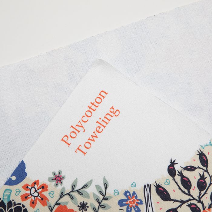 We use a soft loop pile fabric designed to absorb moisture. Printed terry cloth fabric was originally a woven fabric but may also be warp or weft knitted. Our printed terry cloth fabric is constructed using a closed loop, woven poly and cotton blend to give that truly traditional, soft towel feel. 'Terry' comes from the French 'tirer', which literally means 'to pull'. This is due to how the towel cloth was made by pulling the pile loops out by hand.