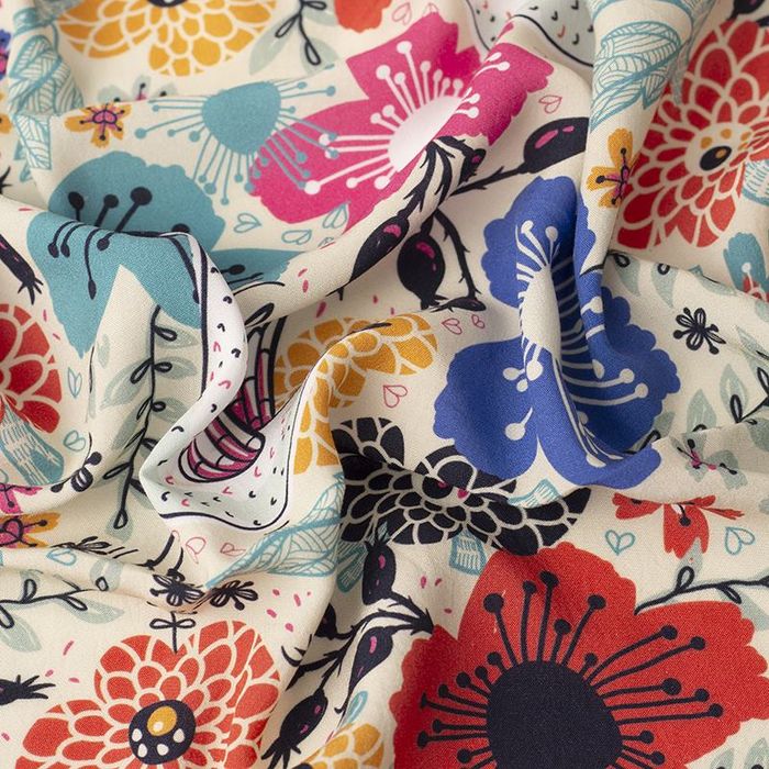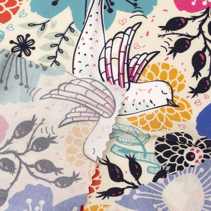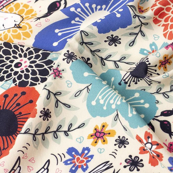 We use digital printing methods on all of our fabrics. Dye sublimation techniques first print your design onto a sheet of transfer paper. Don't worry, we don't put a transfer onto your fabric. This specialist transfer paper bonds the eco-friendly inks deep into the fibers of your customized viscose fabric when heat is applied. This results in a beautiful, full-color HD print that will last for years to come. This leaves you with your printed viscose, with no transfer on the surface, giving you the original handle of the material, ready to use for your next home project or dressmaking venture. Due to the print process large areas of solid color may show minor blemishes or discoloration. This is to be expected and we would advise avoiding large solid blocks of color if possible.