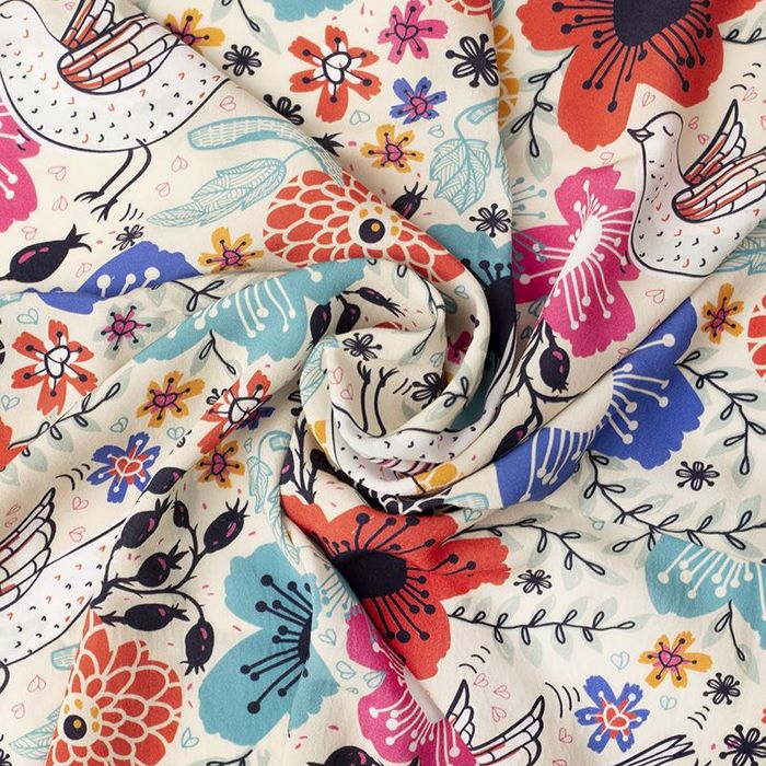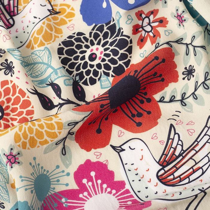 There are a variety of finishing options when you order your customized viscose fabric. You can have your material cut on the line, which will remove any white edges that may appear around your printed design, or you can request it is sent to you as it comes, straight from the printer with those edges still there. If you would prefer our talented seamstresses can hem your printed viscose fabric for you. Available in either a folded hem or an overlock hem you can choose between black or white thread. Ensure to allow extra fabric when choosing your size, and add on a couple of days for the hemming to be done.