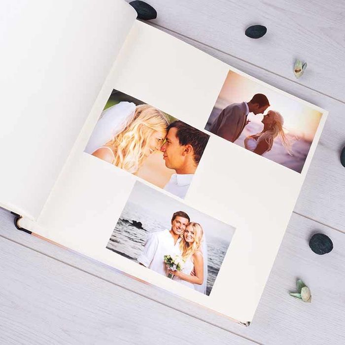 Elegant, stylish and just perfect for keeping your special photos looking their best. Our specialist , personalized wedding album printing services combine traditional bookmaking craftsmanship with the latest printing technology to ensure your album looks incredible. We source our book blocks from Florence Italy, and then bind the albums by hand in our studio. Choose from 3 different sizes and orientations, and select the images you want printed on the front and back cover. We cover the hardback with Monroe satin, which adds elegance and class. Inside the album is thick Italian paper, separated with parchment tissue interleaves. Your custom wedding album is self-mounting, so we also offer an optional pack of 250 double sided photo mounts. There is also the option of adding a classic presentation case - this is especially lovely if you are planning on giving it as a gift.